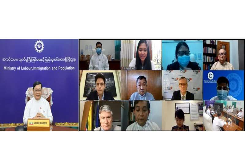 အထည်ချုပ်ကဏ္ဍအတွက် ကိုဗစ်-၁၉ အထောက်အပံ့အဖြစ် ဥရောပသမဂ္ဂ မြန်ကူ ထောက်ပံ့ကြေးငွေ အစီအစဉ်အပေါ် နှစ်ကုန်ပြန်လည်သုံးသပ်မှုနှင့် ဆက်လက်ဆောင်ရွက်မည့် လုပ်ငန်းစဉ်များ ညှိနှိုင်းရေး ဆွေးနွေးပွဲကို ယနေ့မွန်းလွဲ ၂ နာရီတွင် အလုပ်သမား၊ လူဝင်မှုကြီးကြပ်ရေးနှင့် ပြည်သူ့အင်အား ဝန်ကြီးဌာန အစည်းအဝေးခန်းမ၌ ဗီဒီယို ကွန်ဖရင့်စနစ်ဖြင့်ကျင်းပသည်။