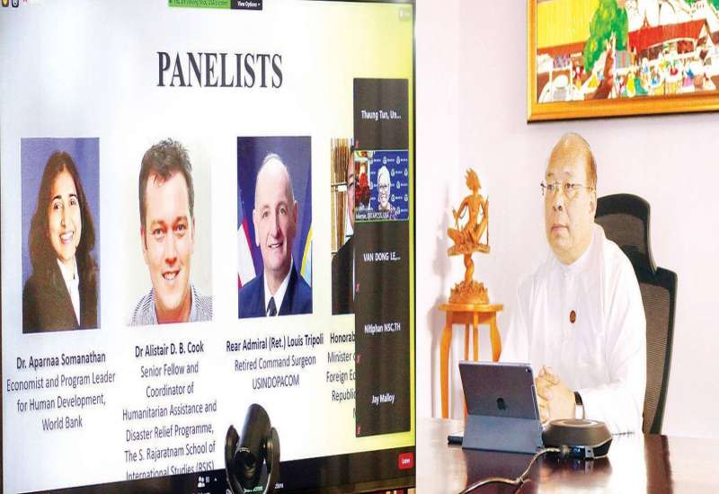 ရင်းနှီးမြှုပ်နှံမှုနှင့် နိုင်ငံခြားစီးပွားဆက်သွယ်ရေးဝန်ကြီးဌာန ပြည်ထောင်စု ဝန်ကြီး ဦးသောင်းထွန်းသည် အာရှ-ပစိဖိတ် လုံခြုံရေး ဆိုင်ရာ လေ့လာမှုစင်တာ (APCSS) က ယနေ့ ကျင်းပသည့် “ကိုဗစ်-၁၉ နှင့် အလွန်ကာလ - ကြံ့ကြံ့ခံနိုင်မှု မြင့်မားရေး နိုင်ငံတကာ ပူးပေါင်းဆောင်ရွက်မှု” အလုပ်ရုံဆွေးနွေးပွဲသို့ virtual conference ဖြင့် တက်ရောက်၍ အဓိကဦးဆောင်ဆွေးနွေးသူအဖြစ် ပါဝင် ဆွေးနွေးသည်။
