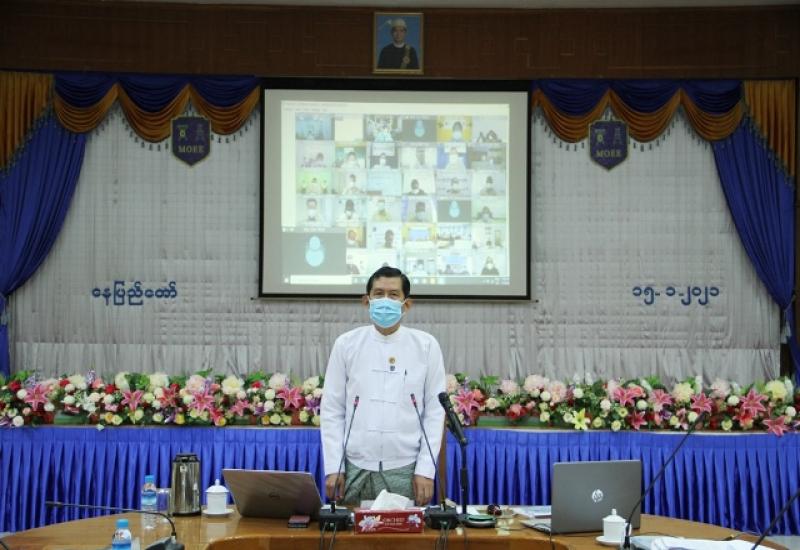 လျှပ်စစ်နှင့်စွမ်းအင်ဝန်ကြီးဌာန၊ စွမ်းအင်ကဏ္ဍ ကြီးကြပ်မှုအောက် ဦးစီးဌာန/ လုပ်ငန်းများမှ ဆောင်ရွက်နေသော လုပ်ငန်းများ၊ ရှေ့လုပ်ငန်းစဉ်များနှင့် စပ်လျဉ်းသည့် ညှိနှိုင်းအစည်းအဝေးကို ယနေ့ နံနက်ပိုင်းတွင် နေပြည်တော်ရှိ လျှပ်စစ်နှင့်စွမ်းအင်ဝန်ကြီး ဌာန ရတနာခန်းမ၌ COVID-19 ကာကွယ်ရေးနည်းစနစ်များနှင့်အညီ ကျင်းပသည်။