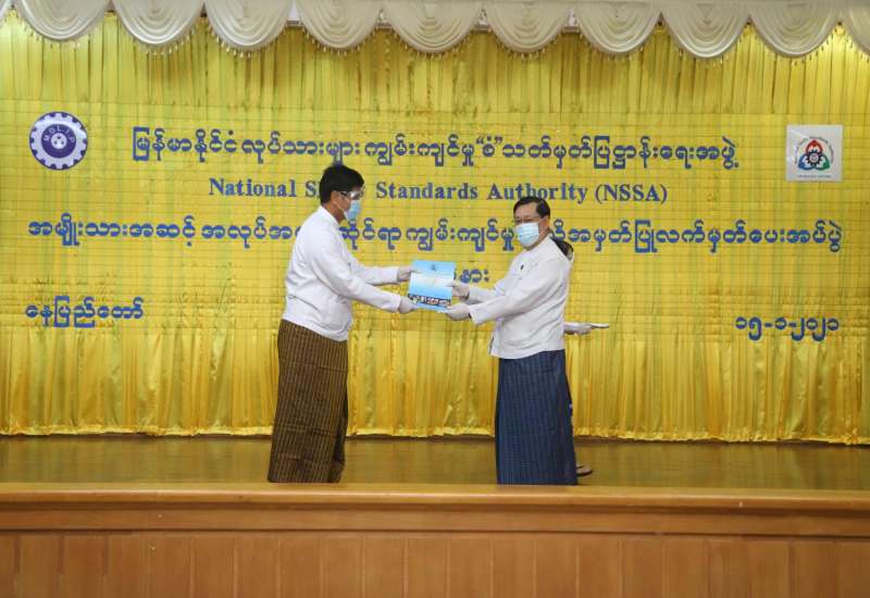 မြန်မာနိုင်ငံလုပ်သားများ ကျွမ်းကျင်မှု“စံ”သတ်မှတ်ပြဋ္ဌာန်းရေးအဖွဲ့ (NSSA)၏ အမျိုးသား အဆင့် အလုပ်အကိုင်ဆိုင်ရာ ကျွမ်းကျင်မှု အသိအမှတ်ပြု လက်မှတ်ပေးအပ်ပွဲအခမ်းအနားကို ယနေ့ နံနက် ၁၀ နာရီတွင် နေပြည်တော်ရှိ အလုပ်သမား၊ လူဝင်မှုကြီးကြပ်ရေးနှင့် ပြည်သူ့ အင်အားဝန်ကြီးဌာန၊ စုဝေးခန်းမ၌ Virtual System ဖြင့် ကျင်းပသည်။