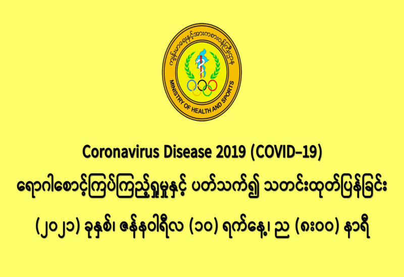 (၉-၁-၂၀၂၁) ရက်နေ့၊ ည (၈:၀၀) နာရီမှ (၁၀-၁-၂၀၂၁) ရက်နေ့၊ ည (၈:၀၀) နာရီ အတွင်း ဓာတ်ခွဲနမူနာ စုစုပေါင်း (၁၇,၃၄၃) ခုအား စစ်ဆေးပြီးစီးခဲ့ရာ COVID-19 ရောဂါ ဓာတ်ခွဲ အတည်ပြု လူနာသစ် (၅၅၅) ဦး တွေ့ရှိရပါသည်။