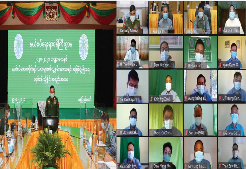 နယ်စပ်ရေးရာဝန်ကြီးဌာန၊ ပညာရေးနှင့်လေ့ကျင့်ရေး ဦးစီးဌာနအနေဖြင့် ပြည်ထောင်စု တိုင်းရင်းသား လူမျိုးများ ဖွံ့ဖြိုးရေးတက္ကသိုလ်၊ ပြည်ထောင်စု တိုင်းရင်းသားလူငယ်များစွမ်းရည် ဖွံ့ဖြိုးရေးဒီဂရီကောလိပ်များ (ရန်ကုန်နှင့်စစ်ကိုင်း)၊ နယ်စပ်ဒေသတိုင်းရင်းသားလူငယ်များ ဖွံ့ဖြိုးရေးသင်တန်းကျောင်း(၄၅)ကျောင်း၊ နယ်စပ်ဒေသတိုင်းရင်းသားလူငယ်များ စက်မှုလက်မှုပညာ သင်တန်းကျောင်း(၉)ကျောင်းနှင့် အမျိုးသမီးအိမ်တွင်းမှုသက်မွေး လုပ်ငန်းပညာသင် တန်းကျောင်း (၄၆)ကျောင်းကို ကိုဗစ်-၁၉ အလွန်ကာလတွင် ပြန်လည်ဖွင့်လှစ် နိုင်ရေး ပြင်ဆင်ထားရှိမှုများနှင့် ၂၀၂၀-၂၀၂၁ဘဏ္ဍာရေးနှစ် သင်တန်းကျောင်း များ၏ တည်ဆောက်ရေးလုပ်ငန်းများ ညှိနှိုင်း အစည်းအဝေးကို ယနေ့နံနက် ၁ဝနာရီက နယ်စပ်ရေးရာဝန်ကြီးဌာန အစည်းအဝေးခန်းမ၌ Virtual Systemဖြင့် ကျင်းပသည်။