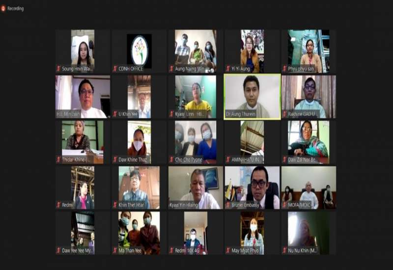 နိုင်ငံတော်အတိုင်ပင်ခံရုံးဝန်ကြီးဌာန၊ ကွဲပြားခြားနားမှုနှင့်အမျိုးသားရေး သဟဇာတဖြစ်မှုဆိုင်ရာ လေ့လာရေးအဖွဲ့ (CDNH) တို့ ပူးပေါင်းပြုလုပ်သည့် ရခိုင်ပြည်နယ်အတွင်း အမုန်းစကားဆန့်ကျင်ရေး နှင့် လူမှုသဟဇာတဖြစ်စေရေး ဦးတည်သော အမျိုးသမီးများ တွေ့ဆုံဆွေးနွေးပွဲ (တတိယအကြိမ်) ဖွင့်ပွဲအခမ်းအနားကို ဒီဇင်ဘာ ၁၂ ရက် နံနက် ၉ နာရီခွဲက Online ဖြင့် ကျင်းပခဲ့သည်။