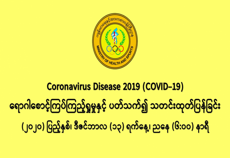 (၁၂-၁၂-၂၀၂၀) ရက်နေ့၊ ည (၈:၀၀) နာရီမှ (၁၃-၁၂-၂၀၂၀) ရက်နေ့၊ ည (၈:၀၀) နာရီ အတွင်း ဓာတ်ခွဲနမူနာ စုစုပေါင်း (၁၈,၅၆၄) ခုအား စစ်ဆေးပြီးစီးခဲ့ရာ COVID-19 ရောဂါ ဓာတ်ခွဲအတည်ပြု လူနာသစ် (၁,၁၂၇) ဦး တွေ့ရှိရပါသည်။