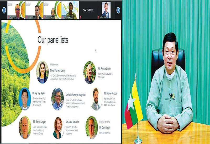 သစ်တောကဏ္ဍ၌ လူ့အခွင့်အရေးနှင့် ပဋိပက္ခဖြစ်စေနိုင်သည့် အခြေအနေများကို အထူး ဂရုပြုသည့် နည်းလမ်းများဖြင့် အကောင်အထည်ဖော် ဆောင်ရွက်ခြင်းဆိုင်ရာ Online ဆွေးနွေးပွဲ Webinar ကို ယမန်နေ့ညနေ ၆ နာရီခွဲက ကျင်းပသည်။