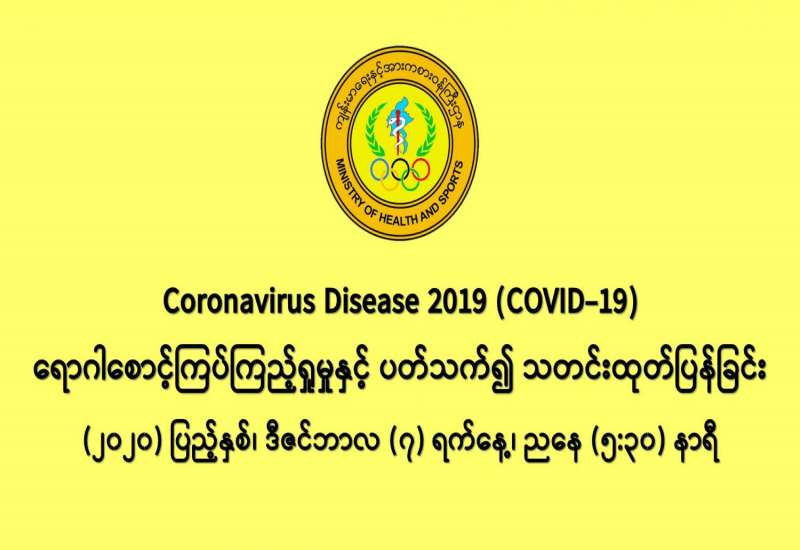 (၆-၁၂-၂၀၂၀) ရက်နေ့၊ ည (၈:၀၀) နာရီမှ (၇-၁၂-၂၀၂၀) ရက်နေ့၊ ည (၈:၀၀) နာရီ အတွင်း ဓာတ်ခွဲနမူနာ စုစုပေါင်း (၁၉,၃၇၉) ခုအား စစ်ဆေးပြီးစီးခဲ့ရာ COVID-19 ရောဂါ ဓာတ်ခွဲအတည်ပြု လူနာသစ် (၁,၂၇၆) ဦး တွေ့ရှိရပါသည်။