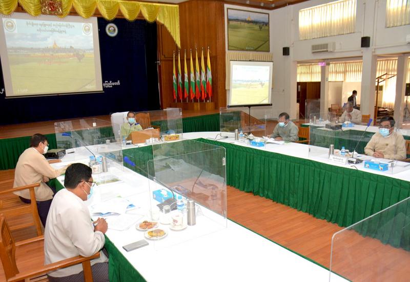 ဗဟိုလယ်ယာမြေ စီမံခန့်ခွဲမှုအဖွဲ့၏ (၃၄) ကြိမ်မြောက် လုပ်ငန်းညှိနှိုင်း အစည်းအဝေးကို ယနေ့ နံနက်ပိုင်းတွင် စိုက်ပျိုးရေး၊ မွေးမြူရေးနှင့် ဆည်မြောင်းဝန်ကြီးဌာန ပြည်ထောင်စု ဝန်ကြီးရုံး အစည်းအဝေးခန်းမ၌ ကျန်းမာရေးဆိုင်ရာ ညွှန်ကြားချက်များနှင့် အညီ ကျင်းပသည်။