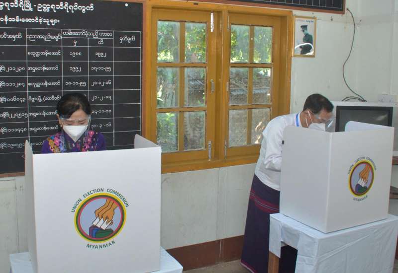 ပြည်ထောင်စုတရားသူကြီးချုပ် ဦးထွန်းထွန်းဦးနှင့်ဇနီး ဒေါ်အေးအေးသိန်း၊ နိုင်ငံ တော်ဖွဲ့စည်းပုံ အခြေခံဥပဒေဆိုင်ရာ ခုံရုံးဥက္ကဋ္ဌ ဦးမျိုးညွန့်နှင့်ဇနီး ဒေါ်ဌေးရီ၊ ပြည်ထောင်စုရွေးကောက်ပွဲ ကော်မရှင် ဥက္ကဋ္ဌ ဦးလှသိန်းနှင့် ဇနီးဒေါ်အေးသီတာတို့သည် ယနေ့နံနက်ပိုင်းတွင် နိုဝင်ဘာ ၈ ရက်၌ ကျင်းပမည့် ၂၀၂၀ပြည့်နှစ် အထွေထွေ ရွေးကောက်ပွဲတွင် နေပြည်တော် ဥတ္တရသီရိ မဲဆန္ဒနယ်မှ ဝင်ရောက်ယှဉ်ပြိုင်ကြမည့် လွှတ်တော်ကိုယ်စားလှယ် နေရာများအတွက် ကြိုတင် ဆန္ဒမဲပေးကြသည်။