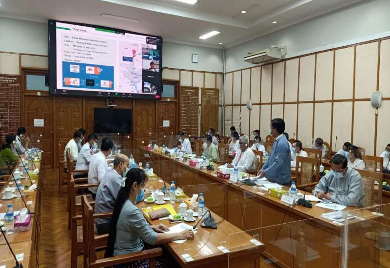 ဒေသအတွင်း ယှဉ်ပြိုင်နိုင်စွမ်းရှိသည့် နိုင်ငံတကာအဆင့်မီ စက်မှုမြို့တစ်ခု ဖြစ်လာစေ ရေးအတွက် ရင်းနှီးမြှုပ်နှံသူများ၏ လုပ်ငန်းများချောမွေ့စွာ လည်ပတ်စေနိုင်ရန်နှင့် ကောင်း မွန်သော အခြေခံ အဆောက်အအုံ ပြည့်စုံသော Facilitation Service ဝန်ဆောင်မှုများဖြင့် ထိရောက်မြန်ဆန်စွာ ဆောင်ရွက်ပေးနိုင်ရန် Korea – Myanmar Industrial Complex (KMIC) ကိုရီးယား- မြန်မာ စက်မှုဇုန်ထူထောင်ရေး ဦးဆောင်ညှိနှိုင်းမှုကော်မတီ (ပထမအကြိမ်) အစည်းအဝေး ကို ယနေ့နံနက် ၁၀ နာရီတွင် ဗီဒီယိုကွန်ဖရင့် စနစ်ဖြင့် ကျင်းပ သည်။