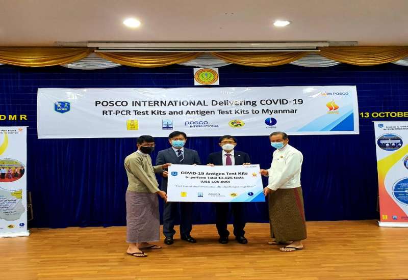 လျှပ်စစ်နှင့်စွမ်းအင်ဝန်ကြီးဌာန၊ မြန်မာ့ရေနံနှင့်သဘာဝဓာတ်ငွေ့လုပ်ငန်း (MOGE) နှင့် အကျိုးတူ ပူးပေါင်းဆောင်ရွက်လျက်ရှိသော POSCO International Corporation မှ ကျန်းမာရေးနှင့် အားကစားဝန်ကြီးဌာနသို့ ကိုရီးယားနိုင်ငံထုတ် RT-PCR Test Kits and Rapid Antigen Test Kits များအား ပေးအပ်လှူဒါန်းပွဲအခမ်းအနားကို ယနေ့တွင် ရန်ကုန်မြို့ရှိ ဆေးသုတေသနဦးစီးဌာန၌ ကျင်းပသည်။