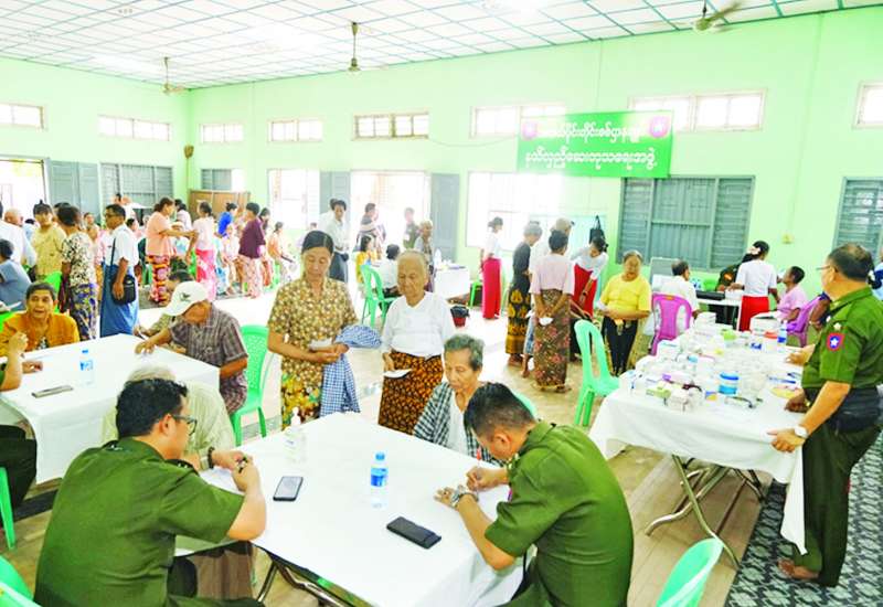မန္တလေးတိုင်းဒေသကြီး မဟာအောင်မြေမြို့နယ် ရတနာဘုမ္မိအရှေ့ရပ်ကွက် ရတနာကောသဘုရားရှိ သံဃာတော်များနှင့် ဒေသခံပြည်သူများအား ယမန်နေ့ နံနက်ပိုင်းတွင် အလယ်ပိုင်းတိုင်းစစ်ဌာနချုပ် နယ်လှည့်ဆေးကုသရေးအဖွဲ့က အဆိုပါဘုရားဝင်းအတွင်းရှိ ဓမ္မာရုံ၌အခြေပြု၍ ကျန်းမာရေးစောင့်ရှောက်မှုလုပ်ငန်းများ ဆောင်ရွက်ပေးသည်။