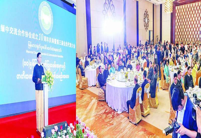 မြန်မာ-တရုတ် ပူးပေါင်းဆက်ဆံရေး အသင်း (၁၀) နှစ်ပြည့် ဂုဏ်ပြုအခမ်းအနားနှင့် တတိယအကြိမ် သင်းလုံးကျွတ်အစည်းအဝေးကို ယနေ့တွင် ရန်ကုန်မြို့ Sedona Hotel ၌ ကျင်းပရာ လူမှုဝန်ထမ်း၊ ကယ်ဆယ်ရေးနှင့်ပြန်လည်နေရာချထားရေးဝန်ကြီးဌာန ပြည်ထောင်စုဝန်ကြီး ဒေါက်တာစိုးဝင်း၊ ရန်ကုန်တိုင်းဒေသကြီးဝန်ကြီးချုပ် ဦးစိုးသိန်း၊ ပြန်ကြားရေးဝန်ကြီးဌာန ဒုတိယဝန်ကြီး ဦးရဲတင့်၊ အားကစားနှင့်လူငယ်ရေးရာဝန်ကြီးဌာန ဒုတိယဝန်ကြီး ဦးထိန်လင်း၊ မြန်မာနိုင်ငံဆိုင်ရာ တရုတ်သံရုံးမှ သံရုံးယာယီတာဝန်ခံ Ms.Cao Jing၊ တရုတ်နိုင်ငံဆိုင်ရာ အသင်းအဖွဲ့များနှင့် ဌာနဆိုင်ရာများမှ တာဝန်ရှိသူများ တက်ရောက်ကြသည်။
