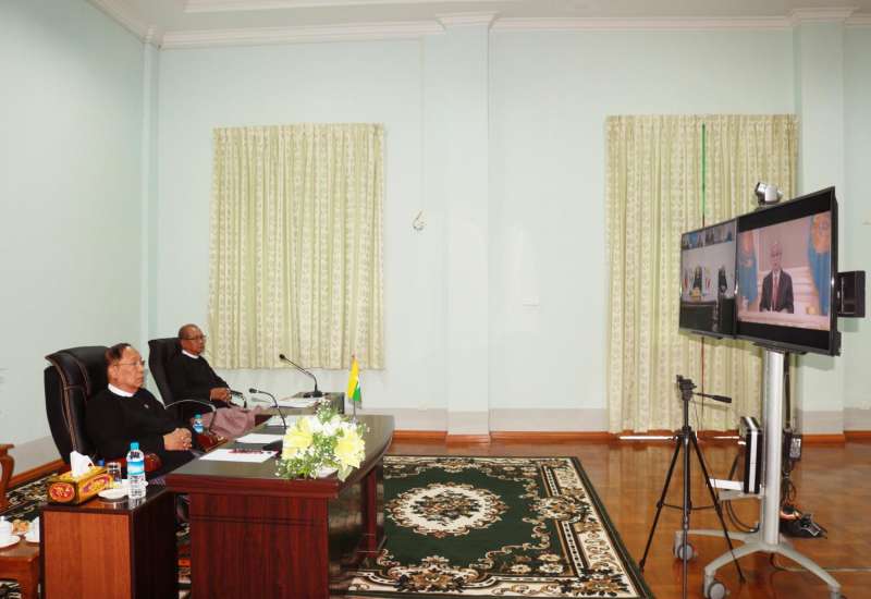 နိုင်ငံတော်ဖွဲ့စည်းပုံ အခြေခံဥပဒေဆိုင်ရာခုံရုံးဥက္ကဋ္ဌ ဦးမျိုးညွန့်သည် ဩဂုတ် ၂၆ ရက်မှ ၂၇ ရက်အထိ Video Conferencing ဖြင့် ကျင်းပသည့် အာရှနိုင်ငံများ၏ ဖွဲ့စည်းပုံအခြေခံဥပဒေဆိုင်ရာ တရားရုံးများနှင့် အဆင့်တူအဖွဲ့အစည်းများအသင်း (AACC- Association of Asian Constitutional Courts and Equivalent Institutions) ၏ စတုတ္ထအကြိမ် အပြည်ပြည်ဆိုင်ရာ ညီလာခံသို့ နေပြည်တော်ရှိ နိုင်ငံတော်ဖွဲ့စည်းပုံအခြေခံ ဥပဒေဆိုင်ရာခုံရုံးမှ တက်ရောက်သည်။ ဥက္ကဋ္ဌနှင့်အတူ နိုင်ငံတော်ဖွဲ့စည်းပုံ အခြေခံဥပဒေဆိုင်ရာခုံရုံး အဖွဲ့ဝင် ဦးမြင့်ဝင်းလည်း ပါဝင်တက်ရောက်ခဲ့သည်။