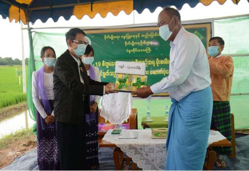 မိုးစပါးမျိုးစေ့ထုတ်တောင်သူများအား ထောက်ပံ့ငွေပေးအပ်ပွဲ အခမ်းအနားကို ယနေ့ နံနက်ပိုင်းတွင် တောင်ငူမြို့နယ် မဟင်ကျေးရွာ၌ ကျင်းပသည်။