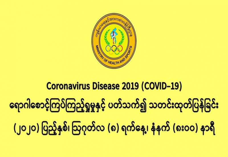 ၁။ (၇-၈-၂၀၂၀) ရက်နေ့အတွက် COVID-19 ရောဂါ ဓာတ်ခွဲစစ်ဆေးရာတွင် - - အမျိုးသားကျန်းမာရေးဓာတ်ခွဲမှုဆိုင်ရာဌာန (ရန်ကုန်) (NHL) မှ (ပထမအသုတ်) ဓာတ်ခွဲ နမူနာ (၃၇၀) ခု၊ - ဆေးသုတေသနဦးစီးဌာန (DMR)မှ ဓာတ်ခွဲနမူနာ (၁၁၁) ခု၊