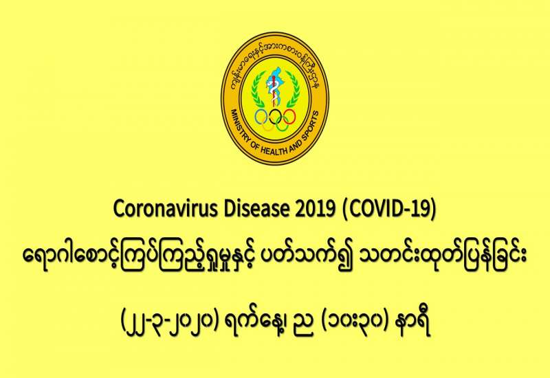 ၁။ ကျန်းမာရေးနှင့်အားကစားဝန်ကြီးဌာန၊ အမျိုးသားကျန်းမာရေး ဓာတ်ခွဲမှုဆိုင်ရာဌာန (ရန်ကုန်) သည် တိုင်းဒေသကြီး/ပြည်နယ် အသီးသီးရှိ ဆေးရုံများတွင် COVID-19 ရောဂါ စောင့်ကြည့်လူနာများအဖြစ် သတ်မှတ်ထားရှိသော လူနာများထံမှ ဓာတ်ခွဲနမူနာများကို ဓာတ်ခွဲ စစ်ဆေးပေးလျက်ရှိပါသည်။