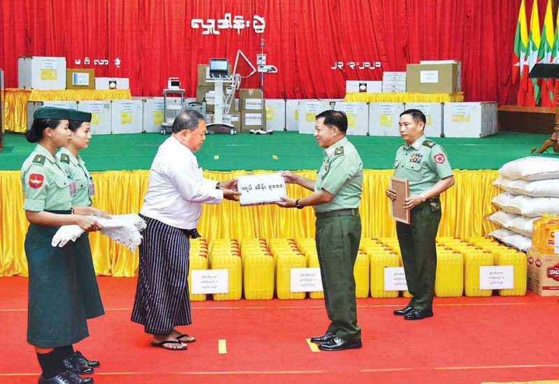 COVID-19 ရောဂါကုသရေးအထောက်အကူပြု ဆေးနှင့်ဆေးပစ္စည်းများ လှူဒါန်းခြင်း အခမ်းအနားကို ယနေ့ နံနက်ပိုင်းတွင် ရန်ကုန်တိုင်းဒေသ ကြီး မင်္ဂလာဒုံမြို့နယ်ရှိ တပ်မတော် အရိုးရောဂါ အထူးကုဆေးရုံကြီး၌ ကျင်းပသည်။