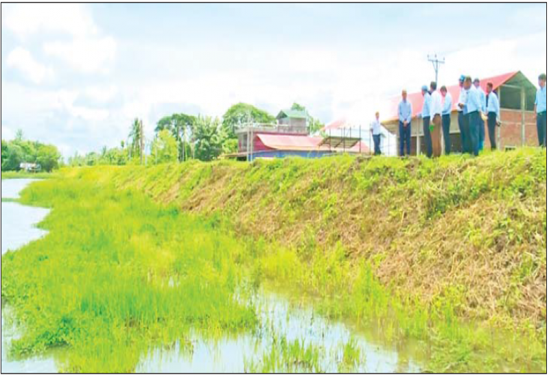 စိုက်ပျိုးရေး၊ မွေးမြူရေးနှင့်ဆည်မြောင်းဝန်ကြီးဌာန ဒုတိယဝန်ကြီး ဦးဗိုလ်ဗိုလ်ကျော်သည် ယမန်နေ့နံနက်ပိုင်းက ပဲခူးတိုင်းဒေသကြီး အုတ်တွင်းမြို့နယ်ရှိ စစ်တောင်းမြစ်အနောက်ဘက်ခြမ်း ဧရိယာများကို ရေဘေးကာကွယ်ထားရှိသည့် ဝါးတီး-အုန်းပင်တာအား ကြည့်ရှုစစ်ဆေးသည်။