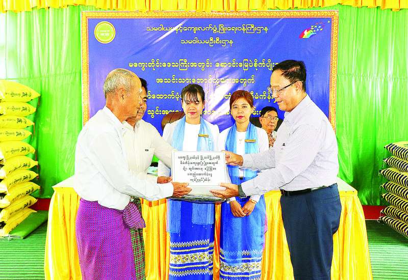 မြို့သစ်မြို့နယ်အတွင်း နိုင်ငံ့စီးပွားမြှင့်တင်ရေးရန်ပုံငွေနှင့် အကျုံးမဝင်သော မိုးစပါးစိုက်တောင်သူများသို့ သီးနှံပေါ်ပေးစနစ်ဖြင့် သွင်းအားစုဓာတ်မြေဩဇာများပေးအပ်ပွဲနှင့် ဆောင်းမြေပဲစိုက်တောင်သူများအတွက် နိုင်ငံတော်ထောက်ပံ့ရန်ပုံငွေဖြင့် မျိုး၊ သွင်းအားစု၊ မြေဩဇာပေးအပ်ပွဲအခမ်းအနားကို ယနေ့နံနက်ပိုင်းတွင် မြို့သစ်မြို့စိုက်ပျိုးရေးဦးစီးဌာန စိုက်ပျိုးပညာပေးရေးနှင့် ဒေသဖွံ့ဖြိုးရေးသင်တန်းကျောင်းခန်းမ၌ကျင်းပရာ သမဝါယမနှင့်ကျေးလက်ဖွံ့ဖြိုးရေးဝန်ကြီးဌာန ပြည်ထောင်စုဝန်ကြီး ဦးလှမိုး၊ မကွေးတိုင်းဒေသကြီးဝန်ကြီးချုပ် ဦးတင့်လွင်၊ တိုင်းဒေသကြီးဝန်ကြီးများနှင့် ဌာနဆိုင်ရာတာဝန်ရှိသူများ တက်ရောက်ကြသည်။