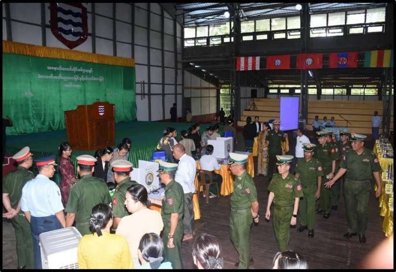 မြန်မာအီလက်ထရောနစ်မဲပေးစက်(MEVM)ဆိုင်ရာ အသိပညာပေးခြင်းနှင် လက်တွေ့စမ်းသပ်မဲပေးခြင်းကို ယနေ့မွန်းလွဲပိုင်းတွင် အနောက်တောင်တိုင်းစစ်ဌာနချုပ် တပ်နယ်အားကစားခန်းမ၌ပြုလုပ်ရာ တိုင်းမှူးဗိုလ်မှူးချုပ် စိုးကျော်ထက်နှင့် အဖွဲ့ဝင်များ၊ အရာရှိ၊ စစ်သည်၊ မိသားစုဝင်များ တက်ရောက်ကြသည်။