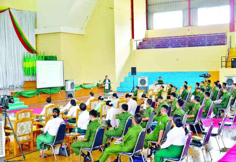 ကာကွယ်ရေးဦးစီးချုပ်ရုံး (ကြည်း)၊ ပြည်သူ့ဆက်ဆံရေးနှင့်စိတ်ဓာတ် စစ်ဆင်ရေးညွှန်ကြားရေးမှူးရုံး ကွပ်ကဲမှုအောက်ရှိ ပညာရေးကျောင်းများ၏ ပညာရည်မြှင့်တင် ရေးအလုပ်ရုံ ဆွေးနွေးပွဲအခမ်းအနားကို ယနေ့နံနက်ပိုင်းတွင် ဇေယျာသီရိမြို့နယ်၊ အမှတ် (၁) အခြေခံပညာအထက်တန်းကျောင်း (နေပြည်တော်) ရှိ ခန်းမ၌ပြုလုပ်ရာ ပြည်သူ့ဆက်ဆံရေးနှင့် စိတ်ဓာတ်စစ်ဆင်ရေးညွှန်ကြားရေးမှူးရုံး၊ ညွှန်ကြားရေးမှူး ဗိုလ်ချုပ်ဇော်မင်းထွန်းနှင့် တာဝန်ရှိသူများ၊ ပညာရေးဝန်ကြီးဌာနမှ တာဝန်ရှိသူများ၊ ဖိတ်ကြားထားသူများ၊ တပ်မတော်ပညာရေးကျောင်းများမှ ကျောင်းအုပ်ကြီးများ၊ တပ်မတော်အခြေခံပညာကျောင်းများမှ ကျောင်းအုပ်ချုပ်မှုတာဝန်ခံအရာရှိများ၊ ဆရာ၊ ဆရာမများနှင့်တာဝန်ရှိ သူများတက်ရောက်ကြသည်။