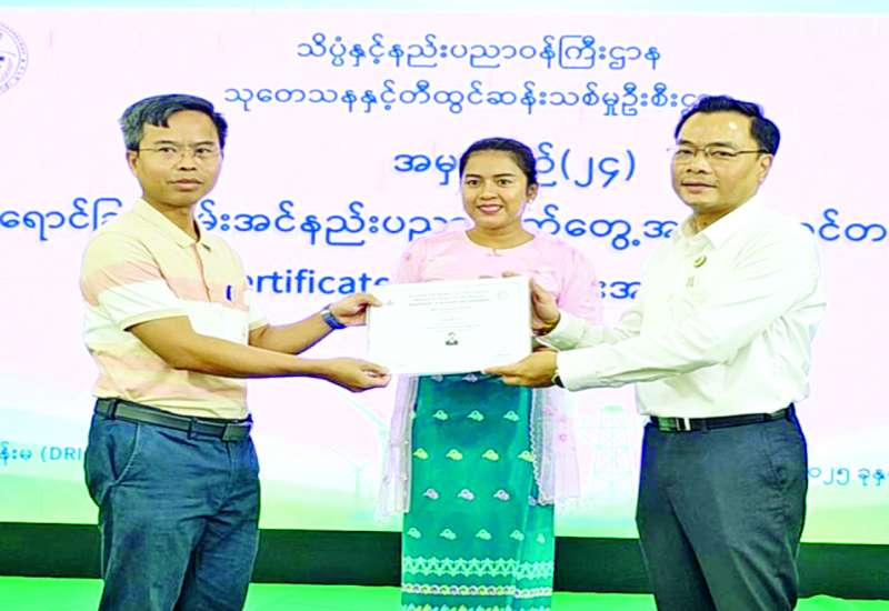 ရန်ကုန်မြို့ရှိ သုတေသနနှင့် တီထွင်ဆန်းသစ်မှု ဦးစီးဌာနက ဖွင့်လှစ်ပို့ချသည့် အမှတ်စဉ် (၂၄) နေရောင်ခြည်စွမ်းအင်နည်းပညာ လက်တွေ့အသုံးချသင်တန်း သင်တန်းဆင်းလက်မှတ်ပေးအပ်ပွဲအခမ်းအနားကို ယမန်နေ့က အဆိုပါဦးစီးဌာန၌ကျင်းပရာ သိပ္ပံနှင့်နည်းပညာ ဝန်ကြီးဌာန ဒုတိယဝန်ကြီး ဒေါက်တာအောင်ဇေယျ၊ သုတေသနနှင့် တီထွင်ဆန်းသစ်မှုဦးစီးဌာန ညွှန်ကြားရေးမှူးချုပ်နှင့် တာဝန်ရှိသူများ၊ သင်တန်းဆရာ ဆရာမ များနှင့် သင်တန်းသား သင်တန်းသူများ တက်ရောက်ကြသည်။