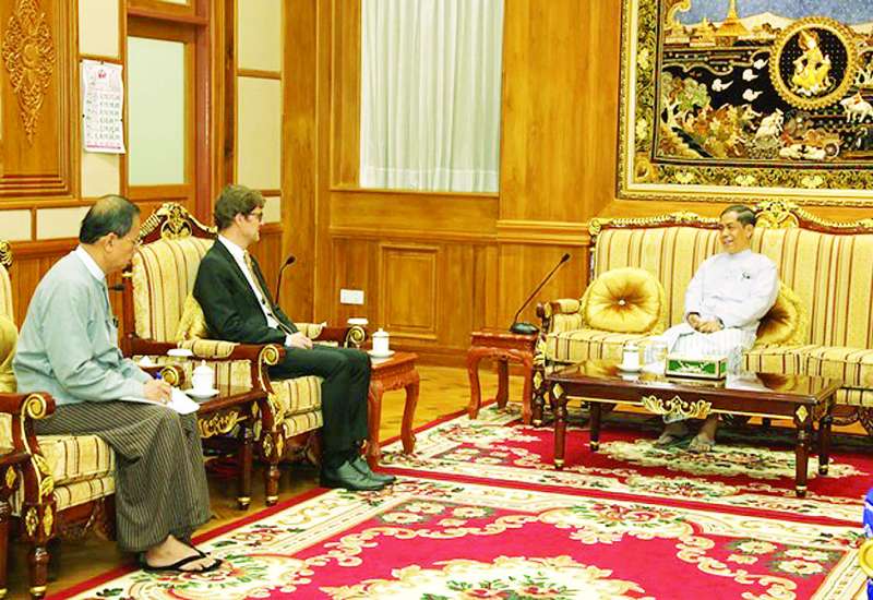 နိုင်ငံတော်သမ္မတရုံးဝန်ကြီးဌာန(၂) ပြည်ထောင်စုဝန်ကြီး ဦးကိုကိုလှိုင်သည် အပြည်ပြည်ဆိုင်ရာကြက်ခြေနီကော်မတီ(ICRC) ၏ မြန်မာနိုင်ငံဆိုင်ရာ ဌာနေကိုယ်စားလှယ်ဖြစ်သူ Mr. Arnaud de Baecque အား ယနေ့နံနက်ပိုင်းတွင် နေပြည်တော်ရှိ အမျိုးသားကာကွယ်ရေးနှင့်လုံခြုံရေးကောင်စီရုံးဧည့်ခန်းမ၌ လက်ခံတွေ့ဆုံသည်။