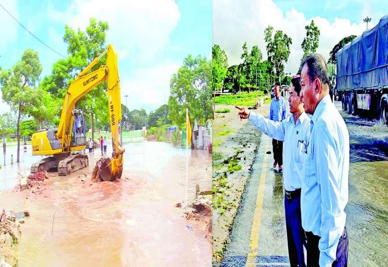 စိုက်ပျိုးရေး၊ မွေးမြူရေးနှင့်ဆည်မြောင်းဝန်ကြီးဌာန ပြည်ထောင်စုဝန်ကြီး ဦးမင်းနောင်သည် ဒုတိယဝန်ကြီး ဦးဗိုလ်ဗိုလ်ကျော်၊ တာဝန်ရှိသူများနှင့်အတူ ယနေ့နံနက်ပိုင်းက နရဘန်ချောင်းရေလျှံတက်၍ ရေကြီးမှုနှင့် လမ်းရေကျော်ကျမှုများ၊ ရေစီးရေလာကောင်းမွန်ရေး ပင်လောင်းလမ်းဖြတ်သည့် နရဘန်ချောင်း Box Culvert ရှင်းလင်းခြင်း၊ သစ်တပ်ရွာအနီး ရန်ကုန်-မန္တလေးလမ်းအရှေ့ဘက်မှ ပြောင်းရွှေ့တူးဖော်နေသည့် မပိုက်ကယ်ရိုးမှ ရေကူစီးဆင်းစေခြင်း၊ ကျဉ်းမြောင်းနေသည့် ယာယီ Culvert များနှင့် ရေသွားလမ်းအား စက်ယန္တရားများဖြင့် ဖယ်ရှားခြင်းနှင့် ရေသွားလမ်းချဲ့ခြင်းများကို ကြည့်ရှုစစ်ဆေးသည်။