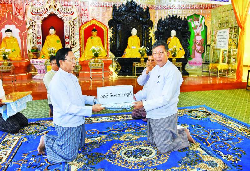 ပြည်ထောင်စုနယ်မြေ နေပြည်တော် ပျဉ်းမနားမြို့ရှိ သမိုင်းဝင်ဘုရားကိုးဆူစေတီတော်မြတ်ကြီး၏ တံခွန်တိုင်အသစ် ပြန်လည်တည်ဆောက်ရန်အတွက် အလှူငွေပေးအပ်လှူဒါန်းပွဲ အခမ်းအနားကို ယနေ့ မွန်းလွဲပိုင်းတွင် ပျဉ်းမနားမြို့ သမိုင်းဝင်ဘုရားကိုးဆူစေတီတော်မြတ်ကြီးရှိ ဓမ္မာရုံ၌ ကျင်းပရာ သာသနာရေးနှင့်ယဉ်ကျေးမှုဝန်ကြီးဌာန ပြည်ထောင်စုဝန်ကြီး ဦးတင်ဦးလွင်၊ ဒုတိယဝန်ကြီးများ၊ အမြဲတမ်းအတွင်းဝန်၊ ညွှန်ကြားရေးမှူးချုပ်များ၊ စေတီတော်ဂေါပကအဖွဲ့ဝင်များနှင့် တာဝန်ရှိသူများ တက်ရောက်ကြသည်။