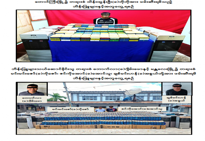 မူးယစ်ဆေးဝါးတားဆီးနှိမ်နင်းရေးရဲတပ်ဖွဲ့မှ တပ်ဖွဲ့ဝင်များပါဝင်သော ပူးပေါင်းအဖွဲ့သည် သတင်းအရ ဩဂုတ်လ ၇ ရက်နေ့ ည ၈ နာရီခွဲအချိန် တောင်ကြီးမြို့ ၊ အေးသာယာကားကြီးဝင်းတွင် မူဆယ်မြို့နေ သိန်းထွန်းဦး(ခ)ဘိုဘိုမှ မန္တလေးသို့ လူမဲ့တန်ဆာဖြင့်တင်ပို့မည့် WATER COOLER ၈ လုံးအား ဖွင့်ဖောက်စစ်ဆေးခဲ့ရာ WATER COOLER များအတွင်းမှ ပလတ်စတစ်ဆပ်ပြာခွက်များဖြင့် ထည့်ထားသည့် ဘိန်းဖြူ ၇ ဒသမ ၀၂ ကီလို (၎င်းဒေသတန်ဖိုး ငွေကျပ် ၁,၀၅၃ သိန်း)အား တွေ့ရှိဖမ်းဆီးရမိခဲ့ပြီး ၎င်း၏ဖော်ထုတ်ချက်အရ အလားတူ WATER COOLER များအတွင်း ဘိန်းဖြူများထည့်သွင်း၍ ကားဂိတ်များမှတစ်ဆင့် လူမဲ့တန်ဆာဖြင့် စစ်ကိုင်းတိုင်းဒေသကြီး၊