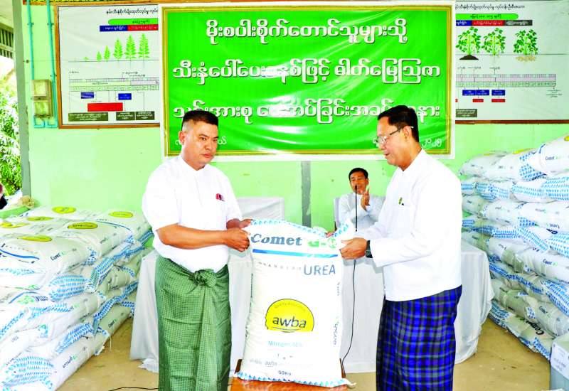 မိုးစပါးစိုက်တောင်သူများသို့ သီးနှံပေါ်ပေးစနစ်ဖြင့် ဓာတ်မြေဩဇာသွင်းအားစုပေးအပ်ခြင်း အခမ်းအနားကို ယနေ့နံနက်ပိုင်းက လယ်ဝေးမြို့နယ် ကြောင်ရေကျေးရွာအုပ်စု ကြောင်ရေကျေးရွာ တောင်သူအသိပညာပေးစင်တာ၌ ကျင်းပရာ သမဝါယမနှင့် ကျေးလက်ဖွံ့ဖြိုးရေးဝန်ကြီးဌာန ပြည်ထောင်စုဝန်ကြီး ဦးလှမိုး၊ နေပြည်တော်ကောင်စီဥက္ကဋ္ဌ ဦးသန်းထွန်းဦးနှင့် ကောင်စီဝင်များ၊ အမြဲတမ်းအတွင်းဝန်၊ ညွှန်ကြားရေးမှူးချုပ်များနှင့် သက်ဆိုင်ရာတာဝန်ရှိသူများ တက်ရောက်ကြသည်။
