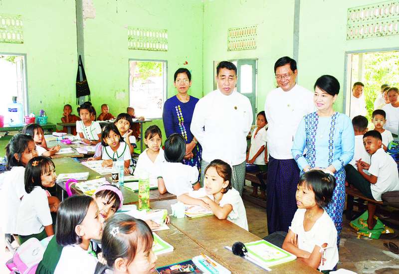 ပညာရေးဝန်ကြီးဌာန ပြည်ထောင်စုဝန်ကြီး ဒေါက်တာ ချောချောစိန်သည် ဒုတိယဝန်ကြီး ဦးနေမျိုးလှိုင်၊ တာဝန်ရှိသူများနှင့်အတူ ယနေ့နံနက်ပိုင်းတွင် လယ်ဝေးမြို့နယ် သဲကောကြီး အခြေခံပညာအထက်တန်းကျောင်း၌ ကျောင်းသား ကျောင်းသူများ အေးချမ်းစွာပညာသင်ယူနေမှုကို ကြည့်ရှုအားပေးစကားပြောကြားသည်။