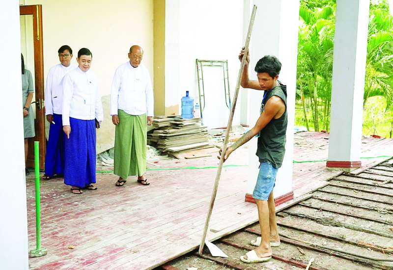 ဆောက်လုပ်ရေးဝန်ကြီးဌာန ဒုတိယဝန်ကြီး ဦးမျိုးမြင့်သည် ပဲခူးတိုင်းဒေသကြီး လမ်းပန်းဆက်သွယ်ရေးဝန်ကြီး၊ တာဝန်ရှိသူများနှင့်အတူ ယနေ့နံနက်ပိုင်းက ပဲခူးမြို့ရှိ ကမ္ဘောဇသာဒီနန်းတော်ပြုပြင်ခြင်း လုပ်ငန်းဆောင်ရွက်နေသည့် လုပ်ငန်းခွင်ကို ကြည့်ရှုစစ်ဆေးသည်။