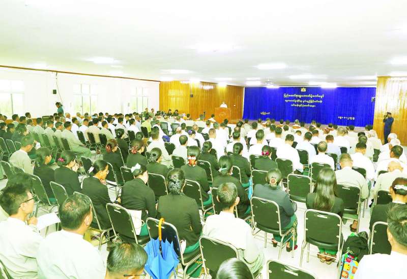 ပါတီစုံဒီမိုကရေစီ အထွေထွေရွေးကောက်ပွဲ အောင်မြင်စွာကျင်းပနိုင်ရန် ရွေးကောက်ပွဲကော်မရှင် အဖွဲ့ခွဲအဆင့်ဆင့်ရှိဥက္ကဋ္ဌ အဖွဲ့ဝင်များနှင့် ဝန်ထမ်းများအတွက် ရွေးကောက်ပွဲဆိုင်ရာ စွမ်းရည်မြှင့်သင်တန်းဖွင့်ပွဲအခမ်းအနားကို ယနေ့နံနက်ပိုင်းက နေပြည်တော်ရှိ ပြည်ထောင်စုရွေးကောက်ပွဲကော်မရှင်ရုံး၌ကျင်းပရာ ပြည်ထောင်စုရွေးကောက်ပွဲကော်မရှင်ဥက္ကဋ္ဌ ဦးသန်းစိုး၊ အဖွဲ့ဝင်များ၊ တိုင်းဒေသကြီး၊ ပြည်နယ်၊ ပြည်ထောင်စုနယ်မြေနှင့် ခရိုင်ရွေးကောက်ပွဲကော်မရှင် အဖွဲ့ခွဲအဆင့်ဆင့်မှ ဥက္ကဋ္ဌနှင့်အဖွဲ့ဝင်များ၊ တာဝန်ရှိသူများ တက်ရောက်ကြသည်။