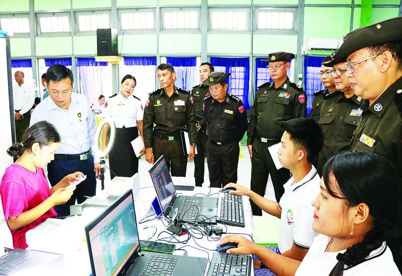 လူဝင်မှုကြီးကြပ်ရေးနှင့် ပြည်သူ့အင်အားဝန်ကြီးဌာန ပြည်ထောင်စုဝန်ကြီး ဦးမြင့်ကြိုင်သည် တာဝန်ရှိသူများနှင့်အတူ ယနေ့နံနက်ပိုင်းတွင် တပ်ကုန်းမြို့နယ် အထွေထွေအုပ်ချုပ်ရေးဦးစီးဌာန အစည်းအဝေးခန်းမ၌ လူဝင်မှုကြီးကြပ်ရေးနှင့် ပြည်သူ့အင်အားဝန်ကြီးဌာန ဝန်ထမ်းများက အိမ်ထောင်စုလူဦးရေစာရင်းနှင့် နိုင်ငံသားစိစစ်ရေးကတ်ပြားပျက်စီး၊ ပျောက်ဆုံးသွားသည့် ဒေသခံပြည်သူများနှင့် နိုင်ငံသားစိစစ်ရေးကတ်ပြား မရရှိသေးသူများအား ပန်းခင်းစီမံချက် အဆင့်(၃)ဖြင့် ဆောင်ရွက်ပေးနေမှုကို ကြည့်ရှုအားပေးသည်။