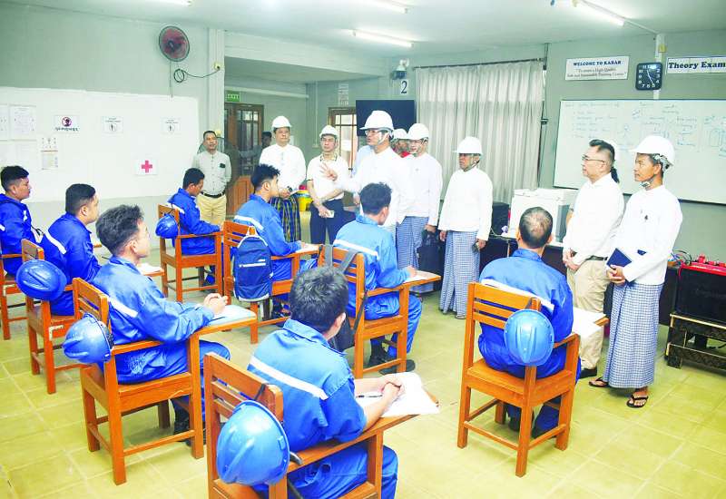 မြန်မာနိုင်ငံလုပ်သားများ ကျွမ်းကျင်မှု စံသတ်မှတ်ပြဋ္ဌာန်းရေးအဖွဲ့(NSSA)ဥက္ကဋ္ဌ၊ အလုပ်သမား ဝန်ကြီးဌာန ဒုတိယဝန်ကြီး ဦးဝင်းရှိန်သည် တာဝန်ရှိသူများနှင့်အတူ ယနေ့နံနက်ပိုင်းက ရန်ကုန်တိုင်းဒေသကြီး မရမ်းကုန်းမြို့နယ်ရှိ Kabar Training သင်တန်းကျောင်း၌ ကျောက်ပုံးရိုက် သင်တန်းဖွင့်လှစ်နေမှုကို ကြည့်ရှုအားပေးသည်။