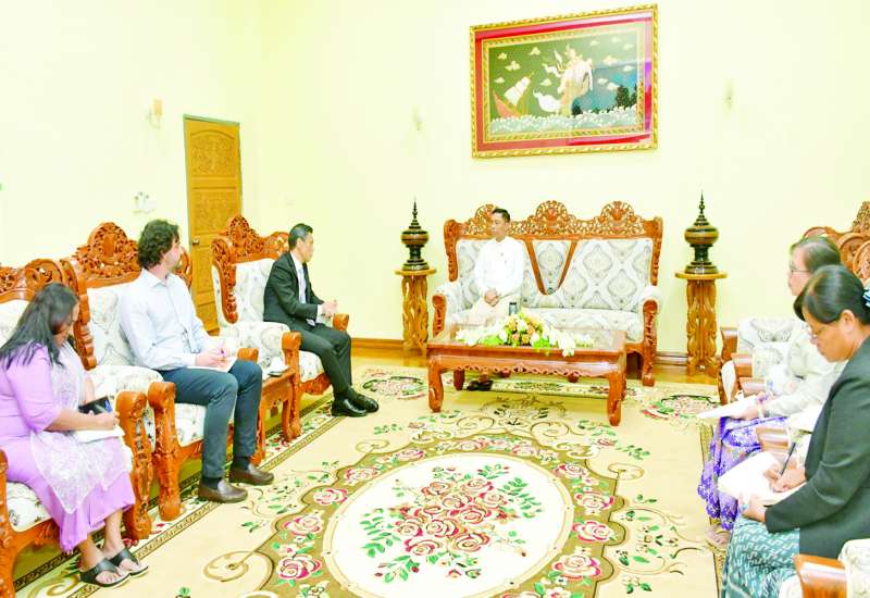 လူမှုဝန်ထမ်း၊ ကယ်ဆယ်ရေးနှင့် ပြန်လည်နေရာချထားရေးဝန်ကြီးဌာန ပြည်ထောင်စုဝန်ကြီး ဒေါက်တာစိုးဝင်းသည် ကုလသမဂ္ဂကလေးများ ရန်ပုံငွေအဖွဲ့(UNICEF) ၏ မြန်မာနိုင်ငံဆိုင်ရာ ဌာနေကိုယ်စားလှယ် Mr. Yasumasa Kimura အား ဩဂုတ် ၆ ရက် မွန်းလွဲပိုင်းတွင် အဆိုပါဝန်ကြီးဌာနဧည့်ခန်းမ၌ လက်ခံတွေ့ဆုံသည်။