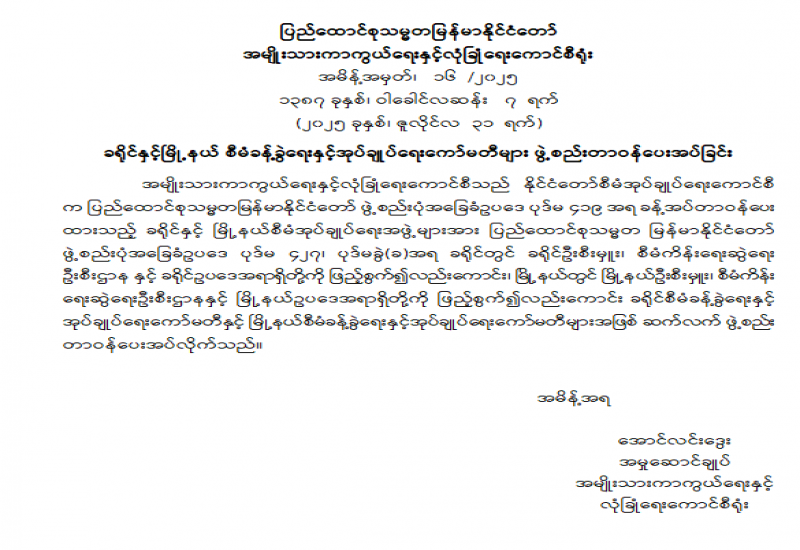 မြန်မာနိုင်ငံအမျိုးသားလူ့အခွင့်အရေးကော်မရှင်ဥက္ကဋ္ဌနှင့် အဖွဲ့ဝင်များ ခန့်အပ်တာဝန်ပေးခြင်း