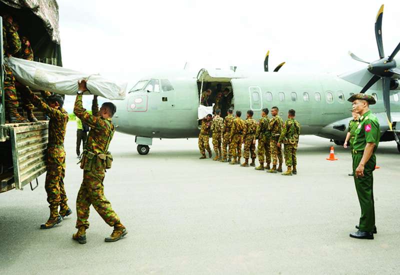 မြန်မာ - တရုတ်ပူးပေါင်းဆက်ဆံရေးအသင်းမှ အားကစားနှင့်လူငယ်ရေးရာဝန်ကြီးဌာန ငလျင်ဘေးသင့်ဝန်ထမ်းများအတွက် ထောက်ပံ့ပစ္စည်းများ ပေးအပ်လှူဒါန်းပွဲကို ယမန်နေ့ မွန်းလွဲပိုင်းတွင် နေပြည်တော် အားကစားလေ့ကျင့်ရေးစခန်း (Gold Camp) ရှိ ဘက်စုံသုံးခန်းမ၌ ကျင်းပခဲ့သည်။