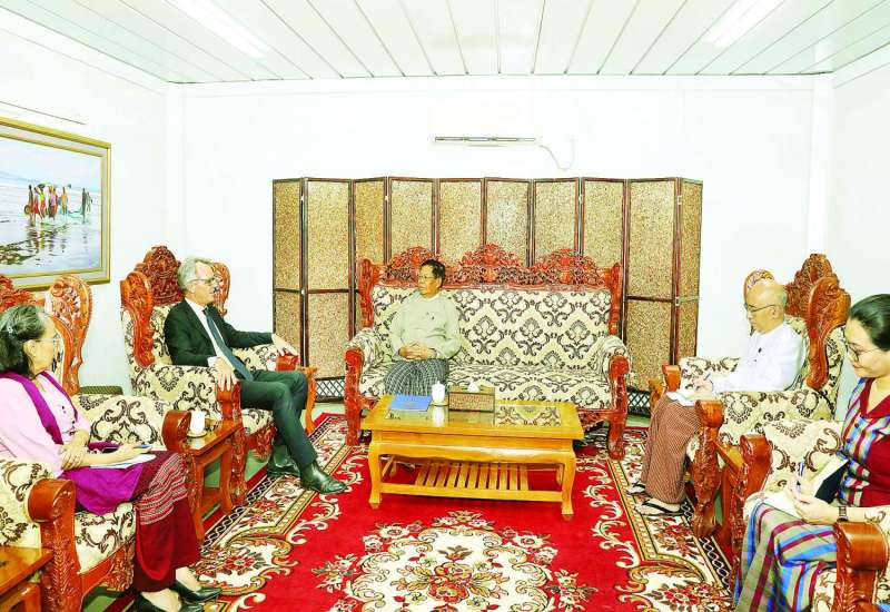 ဒုတိယဝန်ကြီးချုပ်နှင့် နိုင်ငံခြားရေးဝန်ကြီးဌာန ပြည်ထောင်စုဝန်ကြီး ဦးသန်းဆွေသည် မြန်မာနိုင်ငံဆိုင်ရာ ကုလသမဂ္ဂယာယီဌာနေညှိနှိုင်းရေးမှူး၊ လူသားချင်းစာနာထောက်ထားမှုဆိုင်ရာ ယာယီညှိနှိုင်းရေးမှူးနှင့် ကုလသမဂ္ဂကမ္ဘာ့စားနပ်ရိက္ခာအစီအစဉ် (WFP) ၏ မြန်မာနိုင်ငံဆိုင်ရာ ဌာနေကိုယ်စားလှယ်ဖြစ်သူ Mr. Michael Dunford အား ယနေ့မွန်းလွဲ ၂ နာရီတွင် နိုင်ငံခြားရေးဝန်ကြီးဌာန၌ လက်ခံတွေ့ဆုံသည်။