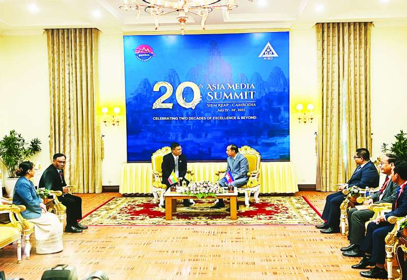 ကမ္ဘောဒီးယားနိုင်ငံ ဆီယမ်ရိမြို့ Sokha Siem Reap Resort & Convention Center ၌ ဇူလိုင် ၂၁ ရက် မွန်းလွဲပိုင်းက 20th Asia Media Summit ၏ အကြိုဆွေးနွေးပွဲဖြစ်သည့် Youth Digital Empowerment Workshop and Girls in ICT Day Cambodia 2025 ကို ကျင်းပရာ ပြန်ကြားရေးဝန်ကြီးဌာန ဒုတိယဝန်ကြီး ဦးရဲတင့် တက်ရောက်သည်။