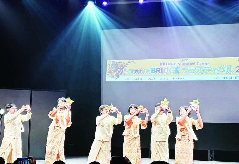 ဂျပန်နိုင်ငံ ဖူကူအိုကာမြို့၌ ဇူလိုင် ၁၂ ရက်မှ ၂၀ ရက်အထိ ကျင်းပသည့် (၃၇) နှစ်မြောက် နွေရာသီအပြည်ပြည်ဆိုင်ရာ လူငယ်များ တွေ့ဆုံပွဲ- ၂၀၂၅ (BRIDGE Summer Camp - 2025) သို့ မြန်မာကျောင်းသားလူငယ် ကိုယ်စားလှယ်ခြောက်ဦးက Junior Ambassador များအဖြစ် ပါဝင်တက်ရောက်၍ ယဉ်ကျေးမှုဖလှယ်ရေးအစီအစဉ်များ ဆောင်ရွက်ခဲ့ကြသည်။