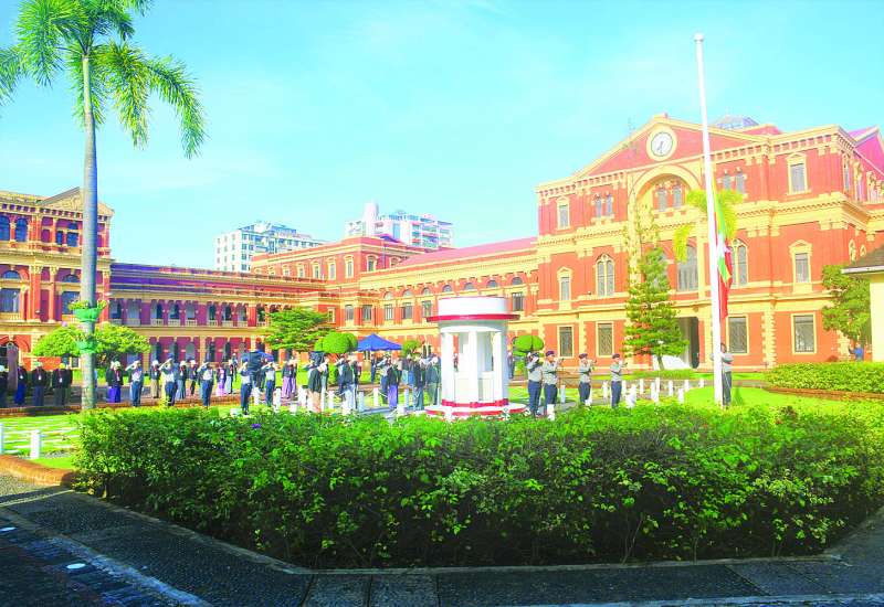 (၇၈) နှစ်မြောက် အာဇာနည်နေ့တွင် ဝမ်းနည်းခြင်းအထိမ်းအမှတ် နိုင်ငံတော်အလံအား တိုင်ဝက်လျှော့ချလွှင့်ထူ၍ အလေးပြုခြင်းအခမ်းအနားကို ယနေ့နံနက် ၇ နာရီခွဲက ဗိုလ်ချုပ်အောင်ဆန်းနှင့်တကွ အာဇာနည်ခေါင်းဆောင်ကြီးများကျဆုံးခဲ့ရာ ရန်ကုန်မြို့ဗိုလ်တထောင်မြို့နယ် သိမ်ဖြူလမ်းရှိ ဝန်ကြီးများရုံး(ယခင်အတွင်းဝန်ရုံး)၌ ကျင်းပသည်။