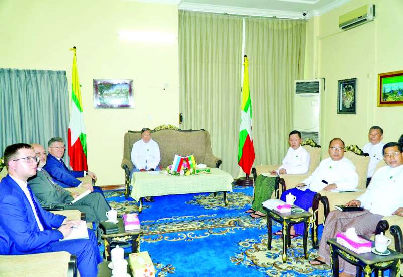 စက်မှုဝန်ကြီးဌာန ပြည်ထောင်စုဝန်ကြီး ဒေါက်တာချာလီသန်းသည် ယမန်နေ့မွန်းလွဲပိုင်းတွင် ရုရှားဖက်ဒရေးရှင်းနိုင်ငံ သံအမတ်ကြီး H.E. Mr. Iskander Azizov ဦးဆောင်သော ကိုယ်စားလှယ်အဖွဲ့အား စက်မှုဝန်ကြီးဌာန ရုံးအမှတ် (၃၀) ဧည့်ခန်းမဆောင်၌ လက်ခံတွေ့ဆုံသည်။