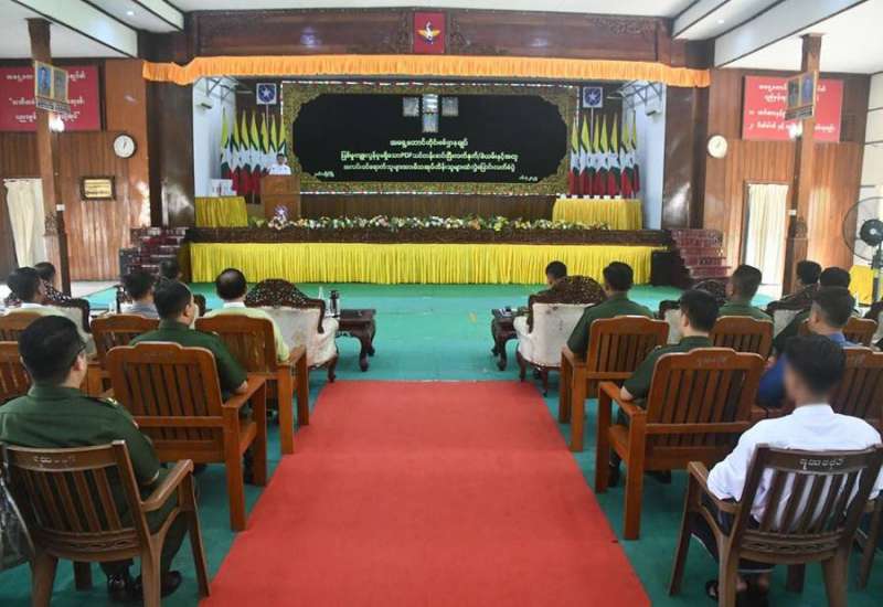 တိုင်းရင်းသားလက်နက်ကိုင်အဖွဲ့နယ်မြေများအတွင်း သင်တန်းများ တက်ရောက်ခဲ့ပြီး ပြစ်မှုကျူးလွန်ခြင်းမရှိခဲ့သည့် ဥပဒေဘောင်အတွင်း ဝင်ရောက်လာသော PDF အမည်ခံအဖွဲ့ဝင်များကို ပြန်လည်ကြိုဆိုလက်ခံ၍ မိဘအုပ်ထိန်းသူများထံ လွှဲပြောင်းပေးအပ်ခြင်းကို ယနေ့မွန်းလွဲပိုင်းတွင် အရှေ့တောင်တိုင်းစစ်ဌာနချုပ်၊ အောင်ဆန်းခန်းမ၌ ပြုလုပ်ရာ မွန်ပြည်နယ်ဝန်ကြီးချုပ် ဦးအောင်ကြည်သိန်း၊ တိုင်းမှူး ဗိုလ်ချုပ် ကျော်လင်းမောင်နှင့် ဌာနဆိုင်ရာတာဝန်ရှိသူများ၊ ဥပဒေဘောင်အတွင်း ဝင်ရောက်လာသော PDF အဖွဲ့ဝင်များနှင့် ၎င်းတို့၏ မိဘအုပ်ထိန်းသူများ တက်ရောက်ကြသည်။