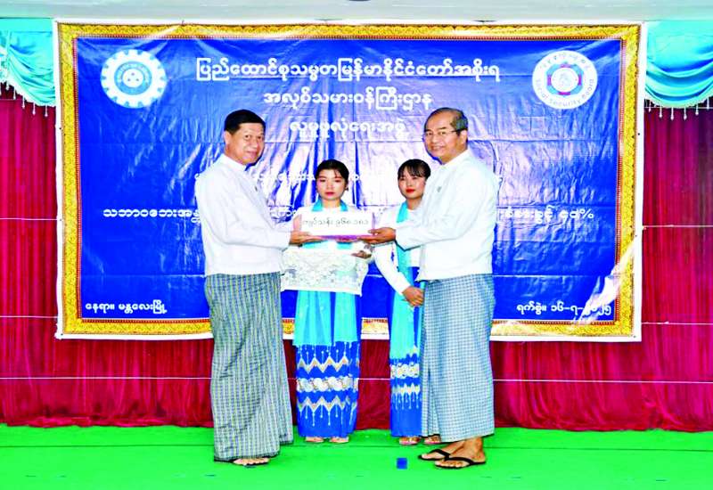 အလုပ်သမားဝန်ကြီးဌာန လူမှုဖူလုံရေးအဖွဲ့မှ မန္တလေးငလျင်ဘေးသင့် အာမခံအလုပ်သမားများအား သဘာဝဘေးအန္တရာယ်ကျရောက်မှုဆိုင်ရာ မိသားစုထောက်ပံ့မှုအကျိုးခံစားခွင့် ၄၀ ရာခိုင်နှုန်းနှင့် ကျန်ရစ်သူအကျိုးခံစားခွင့်ပေးအပ်ပွဲအခမ်းအနားကို ယနေ့နံနက်ပိုင်းက မန္တလေးတိုင်းဒေသကြီး လူမှုဝန်ထမ်းဦးစီးဌာနခန်းမ၌ ကျင်းပသည်။