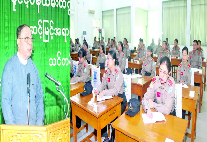 အဆင့်မြင့် အရာထမ်းသင်တန်းအမှတ်စဉ်(၂၇) သင်တန်းဖွင့်ပွဲကို ယနေ့တွင် နိုင်ငံ့ဝန်ထမ်းတက္ကသိုလ် (အောက်မြန်မာပြည်) ၌ကျင်းပရာ ပြည်ထောင်စုရာထူးဝန်အဖွဲ့ အဖွဲ့ဝင်ဦးစိုးတင့်၊ ပါမောက္ခချုပ်နှင့် ဒုတိယပါမောက္ခ ချုပ်များ၊ တက္ကသိုလ်သင်ကြား/ စီမံဌာနများမှ တာဝန်ရှိသူများနှင့် သင်တန်းသား သင်တန်းသူများ တက်ရောက်ကြသည်။