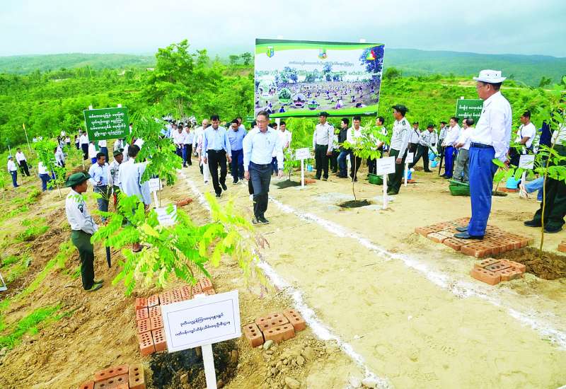 သယံဇာတနှင့်သဘာဝပတ်ဝန်းကျင်ထိန်းသိမ်းရေးဝန်ကြီးဌာန ၂၀၂၅ ခုနှစ် ဒုတိယအကြိမ် မိုးရာသီစုပေါင်းသစ်ပင်စိုက်ပျိုးပွဲကို ပြည်ထောင်စုနယ်မြေ နေပြည်တော်တပ်ကုန်းမြို့နယ် အောက်ဆင်သေကြိုးဝိုင်းအကွက်အမှတ် ၃၀ ရှိ ဂေဟစနစ်ဖြည့် တင်းရေးစိုက်ခင်း ဧက ၁၀၀အတွင်း ကျင်းပရာ ပြည်ထောင်စုဝန်ကြီး ဦးခင်မောင်ရီ၊ ဒုတိယဝန်ကြီး ဦးမင်းသူ၊ အမြဲတမ်းအတွင်းဝန်နှင့် ဌာနဆိုင်ရာတာဝန်ရှိသူများ၊ ဝန်ကြီးဌာနမှအရာထမ်း၊ အမှုထမ်းများ၊ သစ်တောနှင့် ပတ်ဝန်းကျင်ဆိုင်ရာတက္ကသိုလ်မှ ဆရာဆရာမများနှင့် ကျောင်းသား ကျောင်းသူများ၊ ကျောက်မျက်အသင်းမှ တာဝန်ရှိသူများတက်ရောက်ကြပြီး ပြည်ထောင်စုဝန်ကြီးက အထိမ်းအမှတ် ပျဉ်းကတိုးပင်ကို သတ်မှတ်နေရာတွင် ဦးဆောင်စိုက်ပျိုးကာ ဒုတိယဝန်ကြီးနှင့် တက်ရောက်လာသူများက အထိမ်းအမှတ်သစ်ပင်များကို သတ်မှတ်နေရာများတွင် ဆက်လက်စိုက်ပျိုးပေးကြသည်။