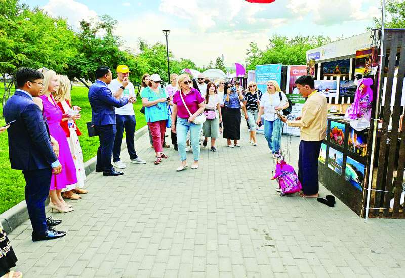 ရုရှားဖက်ဒရေးရှင်းနိုင်ငံ နိုဗိုစီဗစ်မြို့၌ ဇူလိုင် ၁၁ ရက်မှ ၁၃ ရက်အထိ “In Siberia-THERE is!” ခေါင်းစဉ်ဖြင့်ကျင်းပသော အစားအစာနှင့် ခရီးသွားပြပွဲတွင် ပါဝင်ခဲ့သည့် ဟိုတယ်နှင့်ခရီးသွားလာရေးဝန်ကြီးဌာန၏ မြန်မာနိုင်ငံကိုယ်စားပြု ခရီးသွားမြှင့်တင်ရေး ပြခန်းသည် ရုရှားနိုင်ငံသားများနှင့် နိုဗိုစီဗစ်မြို့သူ မြို့သားများ၏ အထူးစိတ်ဝင်စားမှုကိုရရှိခဲ့ပြီး လာရောက်သူများဖြင့် စည်ကားခဲ့သည်။