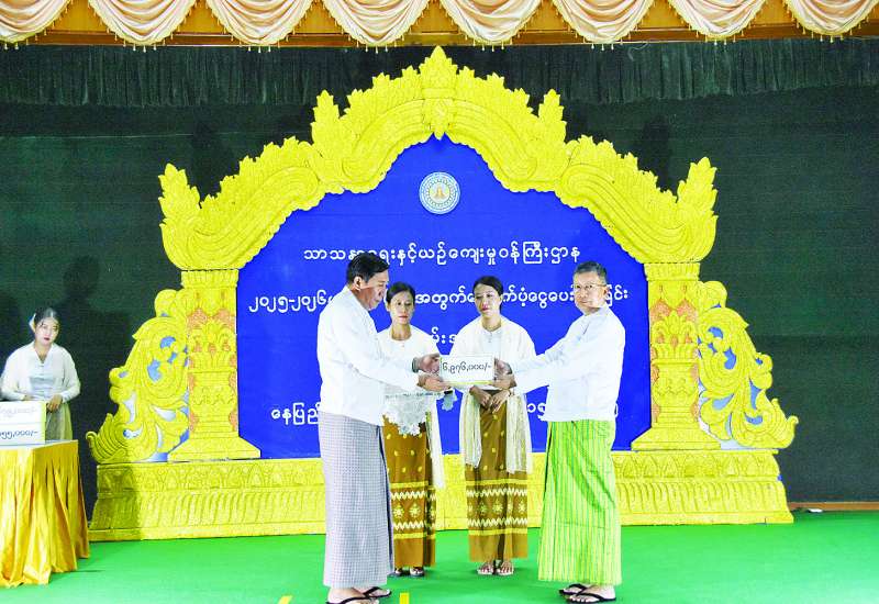 သာသနာရေးနှင့်ယဉ်ကျေးမှုဝန်ကြီးဌာနမှ ၂၀၂၅-၂၀၂၆ ပညာသင်နှစ် ကျောင်းသား ကျောင်းသူများအတွက် ပညာသင်ထောက်ပံ့ငွေပေးအပ်ပွဲအခမ်းအနားကို ယနေ့နံနက် ၁၀ နာရီတွင် ရုံးအမှတ်(၃၁) သာသနာရေးနှင့်ယဉ်ကျေးမှုဝန်ကြီးဌာန စုပေါင်းအစည်းအဝေးခန်းမ၌ ကျင်းပသည်။